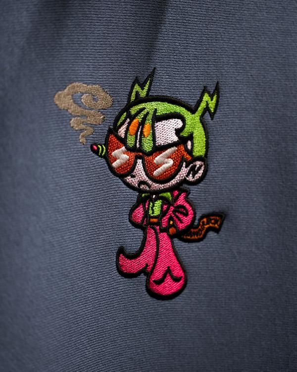 雷箱組を束ねる“組長”を刺繍で表現したヘヴィーフーディ