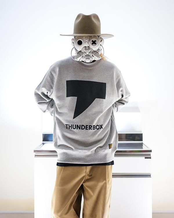 THUNDERBOXのブランドエンブレムT-MARKをプリントしたスウェット