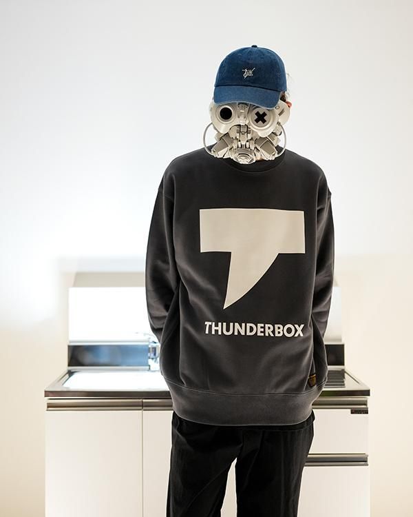 THUNDERBOXのブランドエンブレムT-MARKをプリントしたスウェット